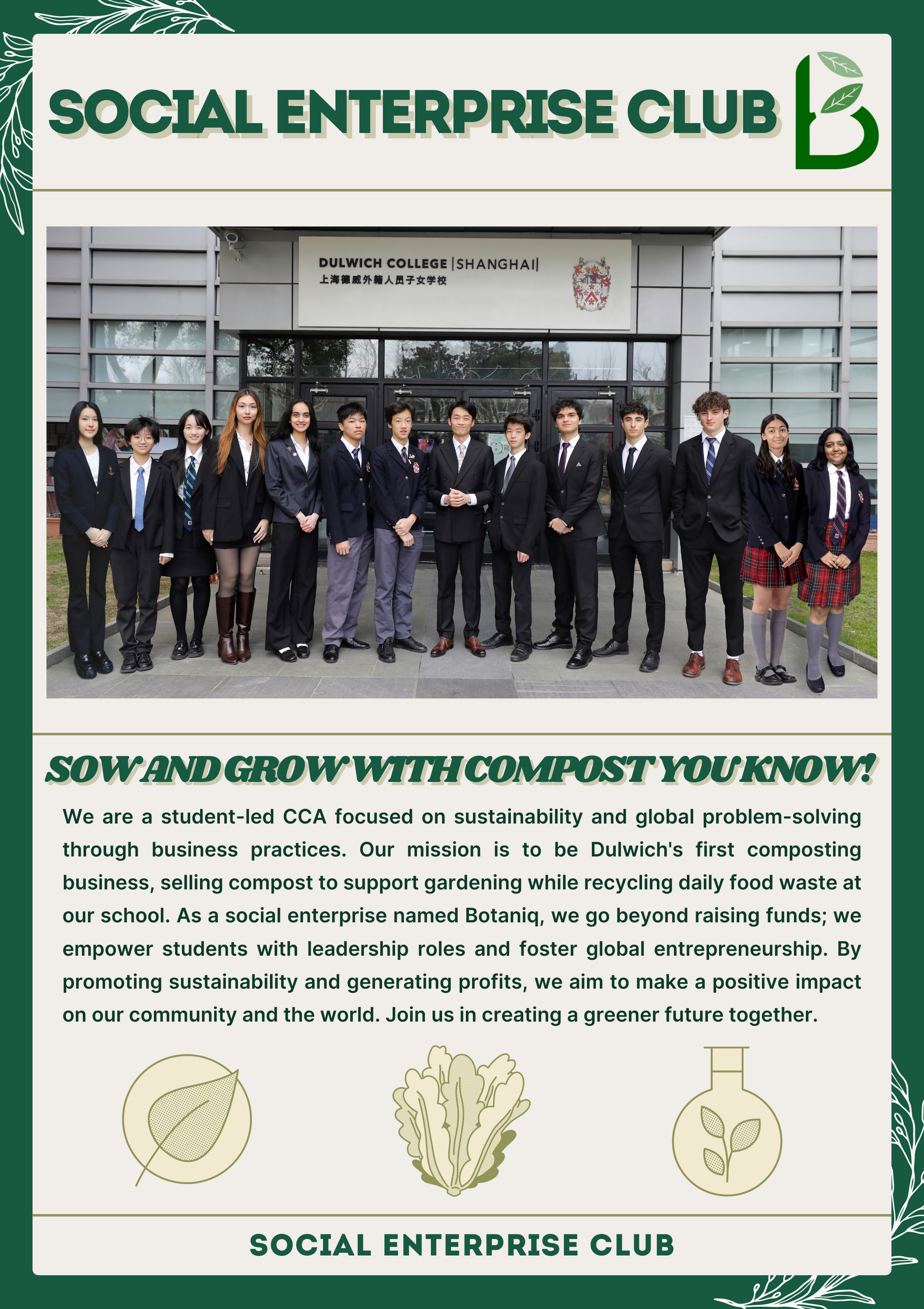 - As a team, created a business venture of sustainable product from scratch – compost for plants using around 30kg daily food waste at school.
